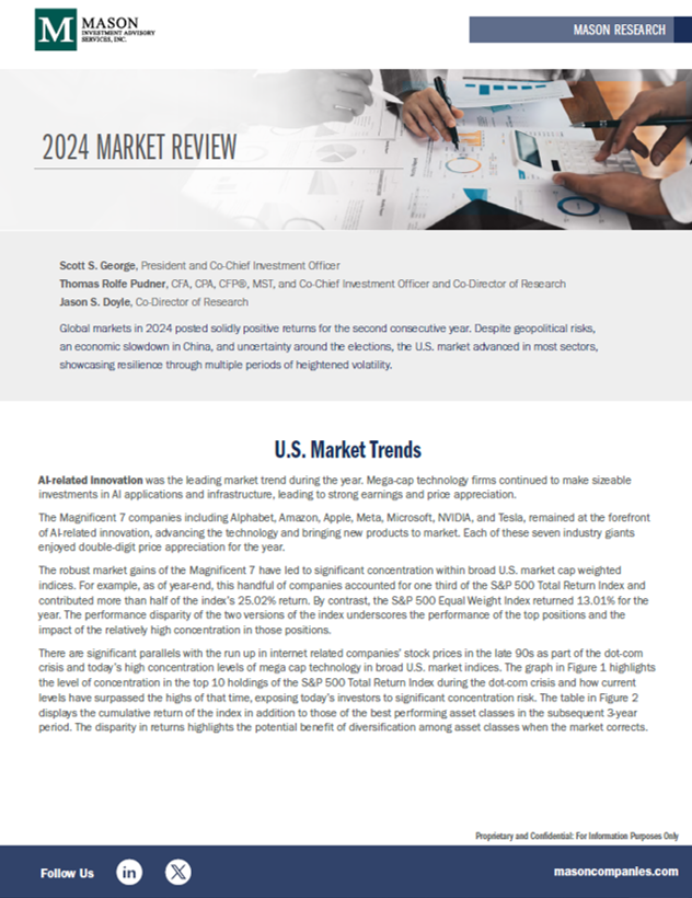 Global markets in 2024 posted solidly positive returns for the second consecutive year. Despite geopolitical risks, an economic slowdown in China, and uncertainty around the elections, the U.S. market advanced in most sectors, showcasing resilience through heightened volatility.